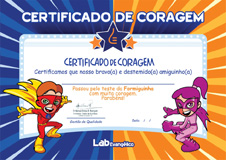 As crianças precisam de toda atenção e carinho na hora de realizar seus exames. O Lab Evangélico criou um ambiente alegre e especial para os pequeninos. Ao final do exame a criança recebe o certificado de coragem, reconhecendo a sua bravura durante a coleta de sangue.
